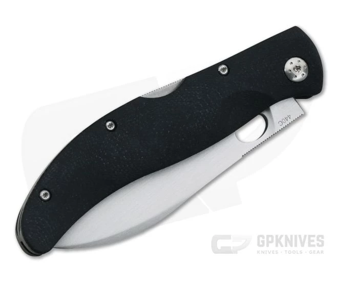 Blade:Â Satin finished 440C is delivered in a nearly convex, classic spear point hunter profile that offers excellent utility for everyday cutting tasks and outdoor use. The blade opens via an oval blade hole pairing with the mid-back lock to make the Yukon fully ambidextrous.