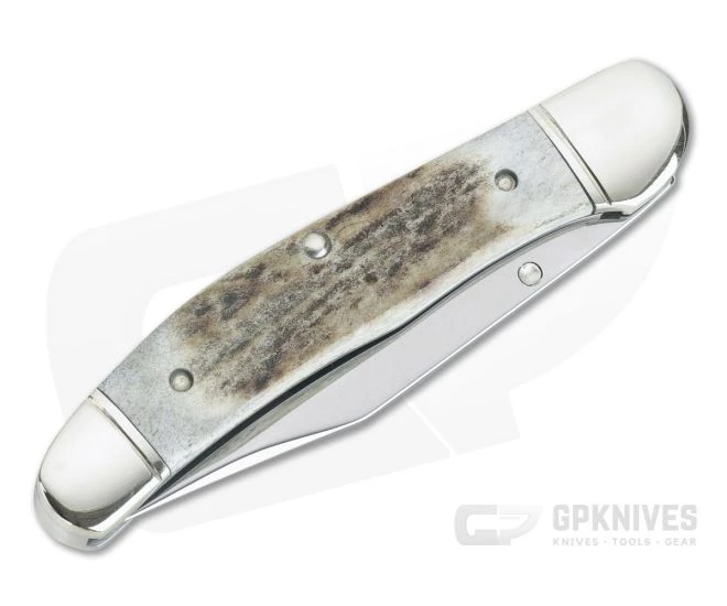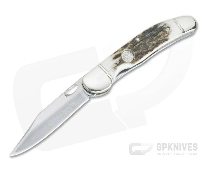Handle:Â Polished nickel silver pins, liners and grooved bolsters support and frame the rugged Stag covers which are securely attached with stainless steel pins offering a handsome, comfortable and classic handle. This is a clean and ergonomic handle is built for serious use while retaining a beautiful aesthetic. The front scale is embellished with the Boker Tree Brand Shield. A stainless steel back spring protects the blade when closed while one of the liners forms the locking mechanism for secure operation and smooth, one-hand operation.