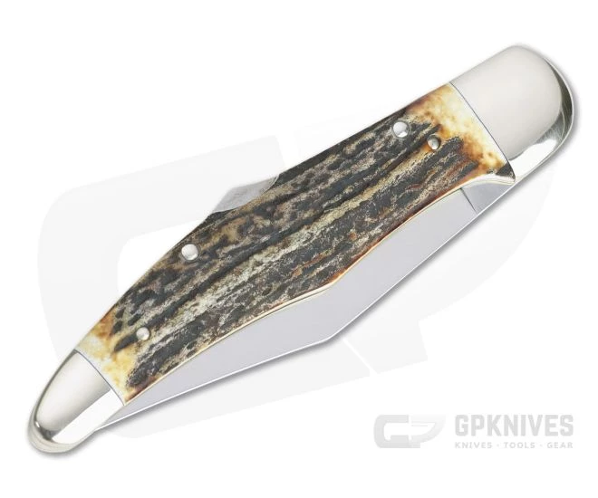 Handle:Â Dual, brushed nickel silver bolsters and stag scales are mounted to brass liners with stainless steel pins offering a rugged, classic handle. This is a large and comfortable handle built for serious use while retaining a beautiful aesthetic. The front scale is embellished with the Boker Tree Brand Shield. A classic back lock provides smooth operation and secure lockup.