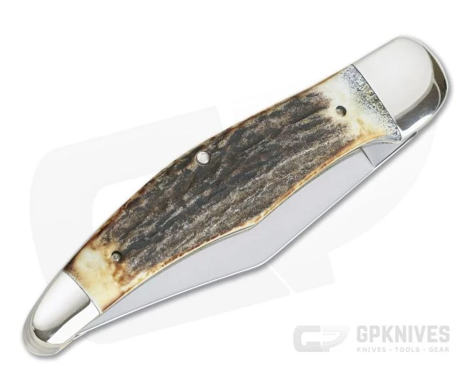 Handle:Â Dual, brushed nickel silver bolsters and Stag are mounted to brass liners with brass pins offering a classic, tough, hand filling handle. This is a large and comfortable handle built for serious use while retaining a beautiful aesthetic. The front scale is embellished with the Boker Tree Brand Shield. Dual stainless steel back springs deliver smooth yet snappy operation.