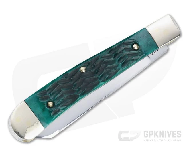 In production for over a century, the Trapper was named for the consumer it was designed for. Relatively lightweight with dual, full size blades, this knife is ideal for those who trap small game or simply prefer a robust a jack knife. This version comes with green pick (jigged) bone covers and German stainless steel blades.