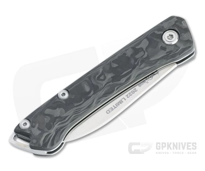 Buck Knives Saunter is a simple, stylish slip joint perfect for modern dress carry. A new model introduced through the Buck Legacy Collection, this limited run comes with a premium satin finished S35VN blade and handsome marbled carbon fiber handle scales. This is a great piece for users and collectors alike. Backed by the Buck Forever Warranty. 2022 Limited production run of 250 pieces.
