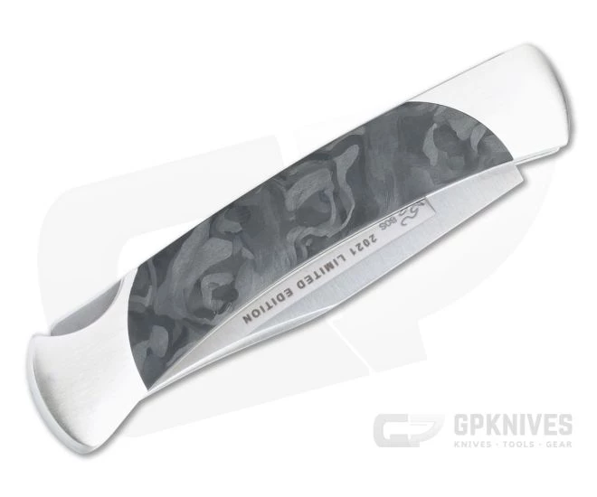 Handle: Like its larger cousin, the 55 is constructed with solid liners supporting handsome bolster framed handle scales. The Pro version gets an upgrade with satin finished nickel silver bolsters framing handsome, eye catching marbled carbon fiber scales. Solid and secure, this traditional back lock delivers time tested reliability, simple operation and a comforting heft in the hand. Includes magnetic box and a certificate of authenticity.