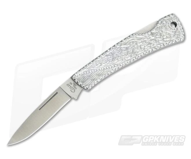 This Case Executive Lockback is like no other! The full stainless steel handle has been hand worked featuring unique texturing and filework along the edges. A locking drop point tru-sharp stainless steel blade rests inside the handle when closed. Lanyard hole for attachment to key ring or lanyard. Brand new direct from W.R. Case & Sons.