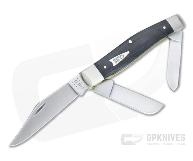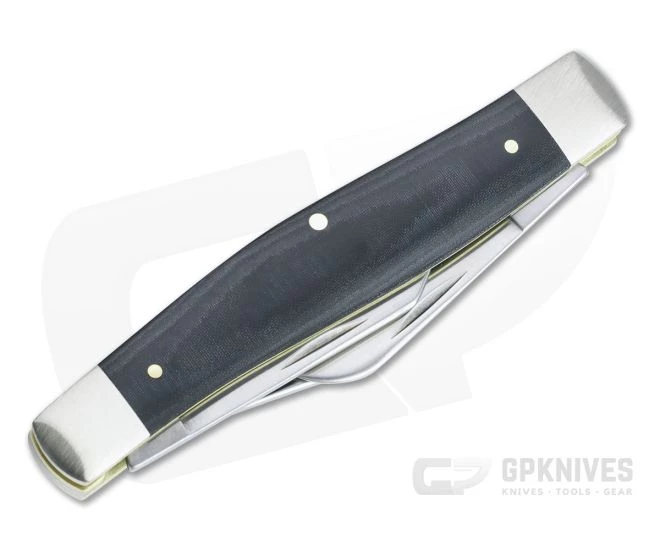 Handle: Brushed bolsters frame black canvas Micarta composite covers that deliver a classy, rugged look and the durability and weather resistance of modern composite materials. Construction is the traditional brass pin and brass liner style with snappy stainless back springs that offer simple, smooth slip joint operation. The front cover sports a Case Arrowhead shield.