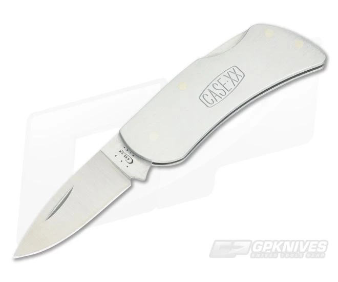Case Lockback with brushed stainless steel handles and Tru-Sharp stainless steel drop point locking blade. Nail nick for easy opening of blade.