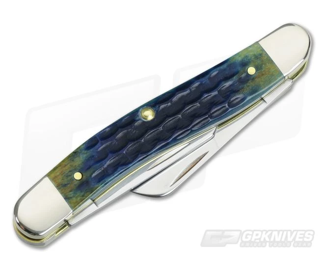 The Stockman is believed to be a scaled down version of the Cattleman pattern and shares similarities in the design. The Medium Stockman is the second largest of this pattern and comes with a main clip point blade and two auxiliary blades. This version comes with attractive and rugged Corn Cob Jig Burnt Indigo Bone covers and polished Tru-Sharp blades.