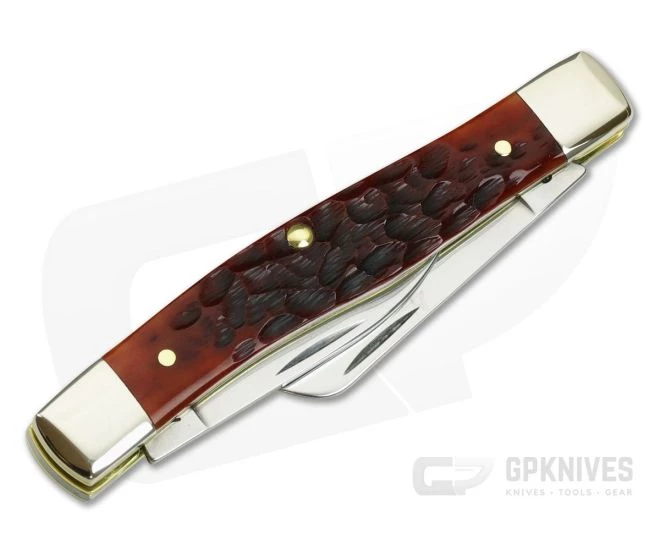 Handle: Polished Nickel Silver bolsters frame rugged, handsome Chestnut Jigged Bone covers that offer a comfortable and secure grip. The covers are fitted with brass pins to brass liners with the Case Oval Script shield. The sturdy back springs offer simple, smooth slip joint operation for use.