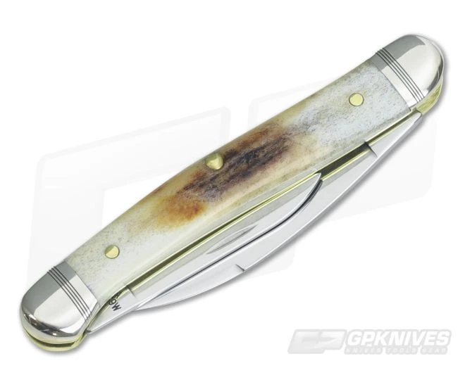 The Handle:Â Genuine stag handle scales offer their natural styling to the piece and have been pinned to brass liners per customary construction. To maintain the ruggedness of the stag, Case has opted to leave off a shield in favor of ribbed and polished nickel silver bolsters.
