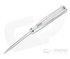 Blade:Â The drop point blade has a full flat grind and pronounced swedge for solid slicing and piercing performance with a unique and stylish tang lever for one-hand opening. Made from Tru-Sharp stainless steel with a mirror satin finish, the RussLock is easy to maintain and offers big knife performance in a compact package with a good combination of durability and cutting performance.