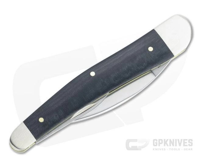 Handles: Smooth, black Micarta covers are fit between two sets of brushed nickel silver bolsters for a classic and stylish look. A canvas and phenolic resin composite, Micarta offers a rugged look with the durability and weather resistance of a modern composite. The covers are attached with brass pins to brass liners in the traditional style. The front cover sports an embossed Case Arrowhead shield while stainless steel back springs deliver smooth, simple and secure slip-joint operation.