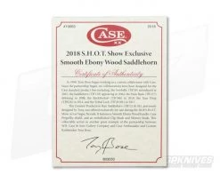 One of the original patterns produced when the Case factory was established in Pennsylvania, the Saddlehorn takes its name from its resemblance to the saddlehorn on a riding saddle. This Small Saddlehorn is a limited edition SHOT Show 2018 version with Ebony Wood covers and flat ground, polished Tru-Sharp stainless steel blades.