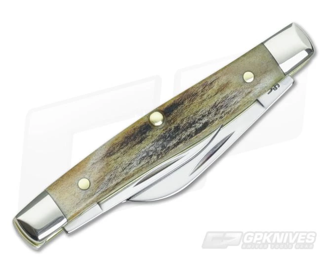 Like its big brothers, the Case Small Stockman packs 3 blades in a convenient and practical pocketknife. Square nickel silver bolsters frame India Stag Bone covers on brass liners which house the three blades: clip point, sheepsfoot and pen.