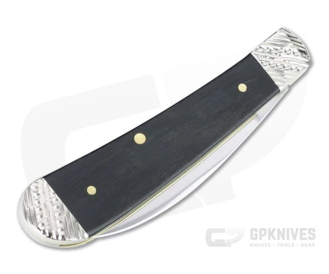 Handles:Â Handsome, smooth dark Ebony wood covers are fit between two sets of tool worked nickel silver bolsters for a striking and classic look with a custom feel. The covers are attached with brass pins to brass liners in the traditional style and the sweeping sway back design is comfortable and secure in multiple grips. The front cover sports an embossed Case Bowtie shield while a stainless steel back spring delivers smooth slip-joint operation with full and half stops.