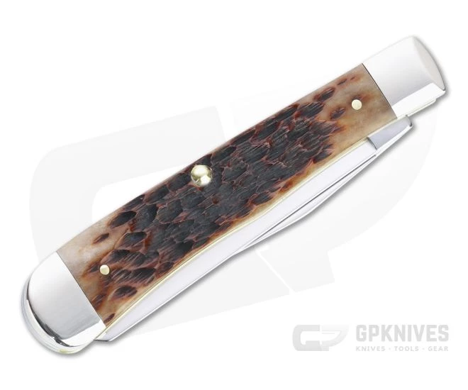 A favorite among Case collectors, the Trapper has been in production since the 1920s and is still a popular and utilitarian jack knife. Originally designed for trapping and skinning tasks, this lightweight is a great all around user thanks to the versatile design. The classic slip joint design offers two large steel blades at the primary end of the comfortable bolstered handle. Great for daily use or an addition to your Case collection. This version comes with Tru-Sharp stainless-steel blades and Peach Seed jigged brown bone covers.