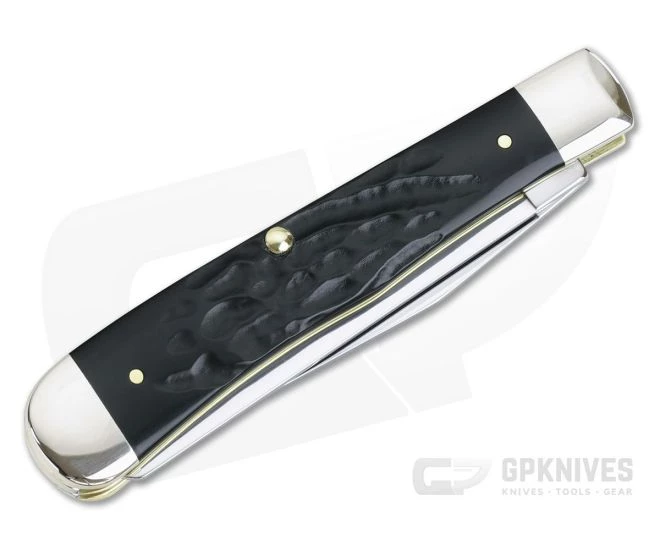 Handle:Â Rough Black Synthetic covers are rugged and low maintenance yet retain a timeless look and feel. Framed by nickel silvers bolsters the scales are attached to brass liners with brass pins in the traditional style and feature the case Oval Script shield on the front.
