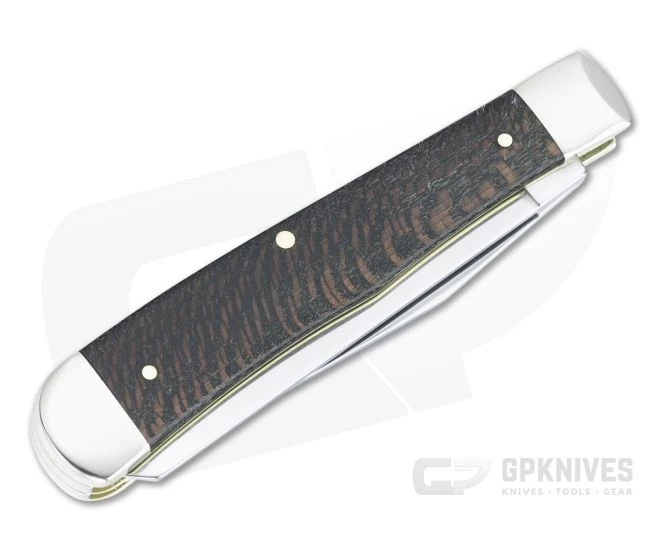 A favorite among Case collectors, the Trapper has been in production since the 1920s and is still a popular and utilitarian jack knife. Originally designed for trapping and skinning tasks, this lightweight is a great all around user thanks to the versatile design. The classic slip joint design offers two large steel blades at the primary end of the comfortable bolstered handle. Great for daily use or an addition to your Case collection. This version comes with Tru-Sharp stainless steel blades, smooth black Sycamore wood covers, polished nickel silver bolsters and matching bow tie shield.