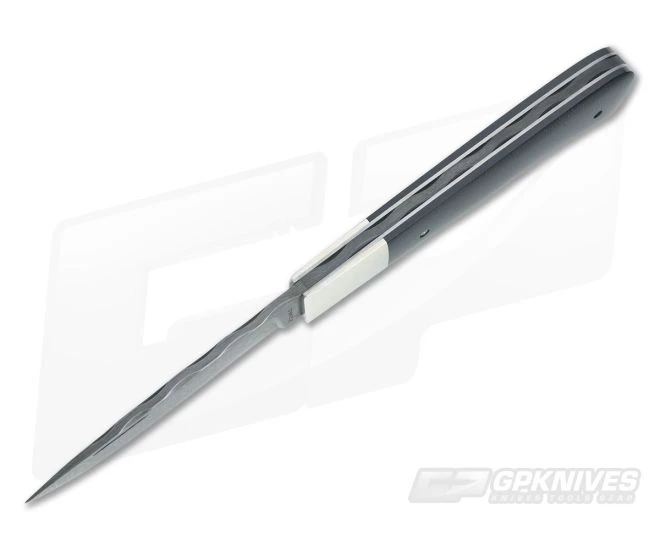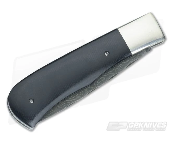 The Chuck Hawes Custom Remington is a traditional slip joint design made in the traditional way. Handsome black micarta handle scales meet with nickel silver bolsters for a classic appearance while also housing the hand forged damascus blade. Includes soft-sided zipper pouch for safe keeping.