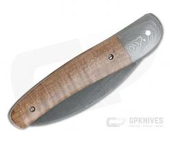 The Chuck Hawes Custom Wharncliffe Whittler is a custom design by Hawes and offers his modern take on this classic slip joint design. Strikingly figured Tiger Stripe Pecan wood handle scales are flush fit to Damascus bolsters over stainless steel liners. The handles house a razor sharp, hand forged Modified Ladder pattern Damascus blade and smooth Damascus back spring.
