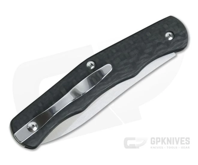 A removable pocket clip allows for traditional carry or a variety of alternative carry options that are only limited by your imagination. A single plain edge CPM-S35VN blade at 60-61 Rc provide razor sharp cutting power that will last. The body of the knife is two-tone polished carbon fiber that keeps the weight low while providing plenty of strength for this Gentleman’s knife. Beautiful, functional, and high quality, this is a knife to hand down through the generations.