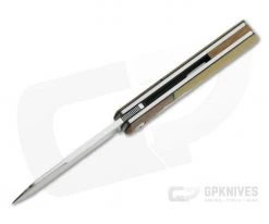 Enrique Pena is known for his remarkable fit, finish and function as well as the blending of traditional and tactical in his designs. This Pena Custom Barlow Front Flipper is no exception. The hand rubbed satin finished CPM-154 blade is razor sharp, perfectly centered and super smooth with a modern, titanium liner construction. The handles call back to the old time slip joints but are made with handsome Micarta composite: brown crosscut bolsters and Greg Hansen Butterscotch for the scales with contrasting black liners and a satin finished shield.