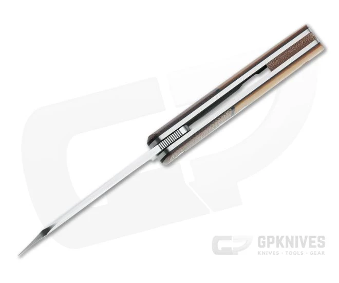 Enrique Pena is known for his unmatched fit, finish, and function and iconic style that blends traditional patterns with modern construction. This Pena Custom Front Flipper Barlow has a hand rubbed satin CPM-154 blade, satin titanium liners and antique paper Micarta scales with natural canvas bolsters.