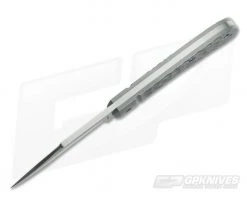 Blade:Â Made from premium CPM154 stainless steel the blade has a fine, hand rubbed satin finish and has a razor edge. As the name implies it is the classic “Lanny’s Clip Point” profile with a sleek swedge and subtle recurve. While utilitarian in design it is beautiful in its simplicity. The slip joint operation has a solid half stop and excellent walk and talk. A robust nail nick provides a solid opening platform.