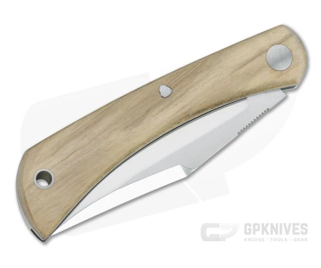 Handle:Â Minimalist and elegant, the sweeping handle is made from Olive Wood supported by stainless steel liners for a classically rugged yet stylish look and warm feel in the hand. Satin stainless steel hardware attaches the handles to the matching back spring which offers smooth, slip joint operation with a solid half stop for security. A hollow stainless steel pin allows for lanyard attachment.