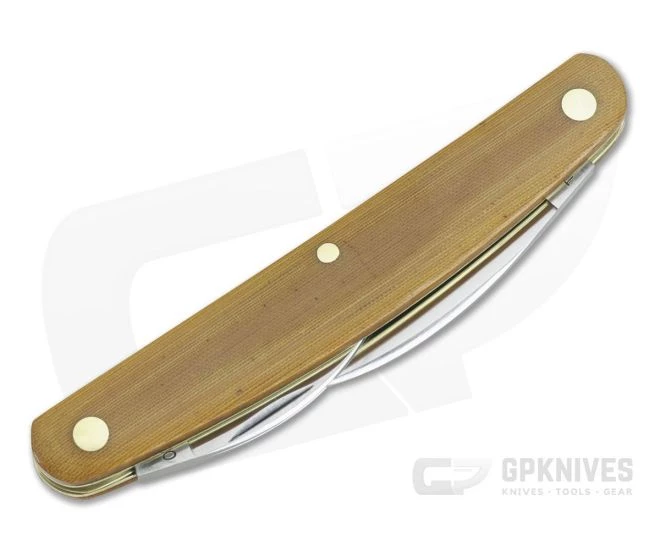 Handle: Natural Linen Micarta handle scales are fitted perfectly to classic brass liners forming the gently curving handle which tapers slightly toward either end. Fine yet rugged covers offer a warm, natural feel for comfort in the hand, striking visual appeal and exceptional durability and weather resistance. Brass liners and pins round out construction.