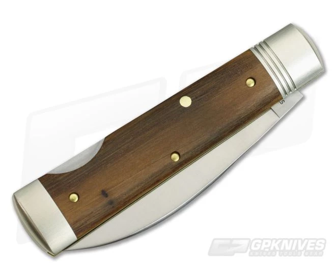 The Handle:Â It doesn’t get more Wall Street than gorgeous American Chestnut Wood. Each slab is smoothed, contoured and finished to fit just right between the two bolsters. They are pinned to brass liners and adorned with an Acorn shield. Nickel silver was chosen for the bolsters and shield. Both were given a handsome brushed satin finish which is just perfect for this #99.