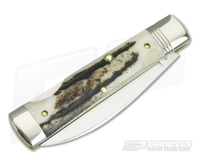 Handle:Â This Wall Street is outfitted with rugged, handsome American Elk stag covers making each piece unique. Each slab is contoured and finished to fit flush between the dual bolsters and maintain the organic feel of the material. The covers are pinned to brass liners and adorned with an Acorn shield. Polished Nickel silver was chosen for the bolsters and shield rounding out this pattern with style.