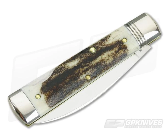 Handle:Â This Wall Street is outfitted with rugged, handsome American Elk stag covers making each piece unique. Each slab is contoured and finished to fit flush between the dual bolsters and maintain the organic feel of the material. The covers are pinned to brass liners and adorned with an Acorn shield. Polished Nickel silver was chosen for the bolsters and shield rounding out this pattern with style.