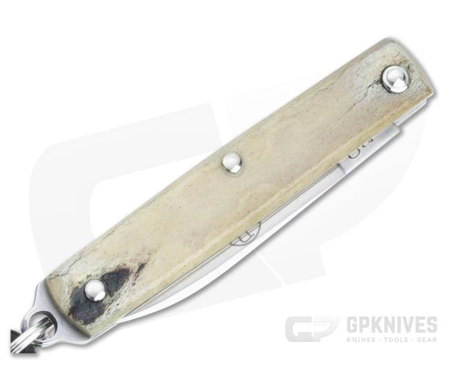 It is always handy to have a keychain knife, especially one as stylish and utilitarian as the #05 from Great Eastern Cutlery. This simple, single blade pen knife has an extended back spring with a hole for attachment of the included split ring and stamped leather lanyard, making this a great choice for fifth pocket carry as well. This version comes with a satin finished stainless steel pen blade and Sambar Stag covers. The blade is marked “PPP” for “Pattern Production Premiere”.