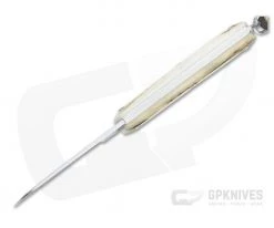 It is always handy to have a keychain knife, especially one as stylish and utilitarian as the #05 from Great Eastern Cutlery. This simple, single blade pen knife has an extended back spring with a hole for attachment of the included split ring and stamped leather lanyard, making this a great choice for fifth pocket carry as well. This version comes with a satin finished stainless steel Sheepsfoot blade and Sambar Stag covers. The blade is marked “PPP” for “Pattern Production Premiere”.