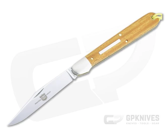 Blade: The large 420HC stainless clip point blade opens with a snappy half stop via a classic nail nick and has a full flat grind for optimal performance. The blade has a GEC shield and “Practical Knives” etched on the front.