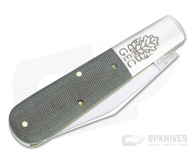 Handle: Fit perfectly between polished nickel silver bolsters are canvas Micarta covers, delivering a full size handle with a subtle taper toward the blade-end. Construction is classic brass liner and pin with strong stainless steel back springs for secure slip joint operation. Each GEC knife ships rolled in wax paper in a sturdy tube with company information on the front.