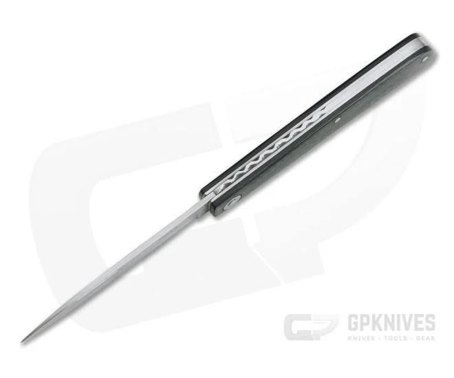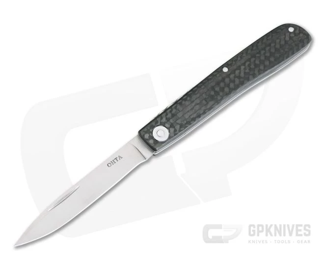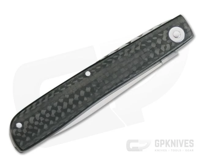 Handle:Â Modern and stylish Carbon Fiber handle scales are attached to polished stainless steel liners with matching pins. Half of the back spring rides proud to the liners and features decorative file work for a custom look and feel. The OLF has solid walk and talk and smooth operation. The slim construction of the OLF calls to mind a classic Bird & Trout knife but works well as an every day carry and utility folder.
