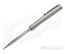 Handle:Â The full titanium handles are clean and ergonomic with a generous index guard, smoothed with faux “bolsters”. Internally milled pockets significantly reduce weight with no sacrifice in strength. The tumbled, blasted finish on the titanium provides a matte gray finish that is discreet for use. The stainless steel back spring delivers a snappy action opening and closing and a generous hole is included for lanyard attachment.