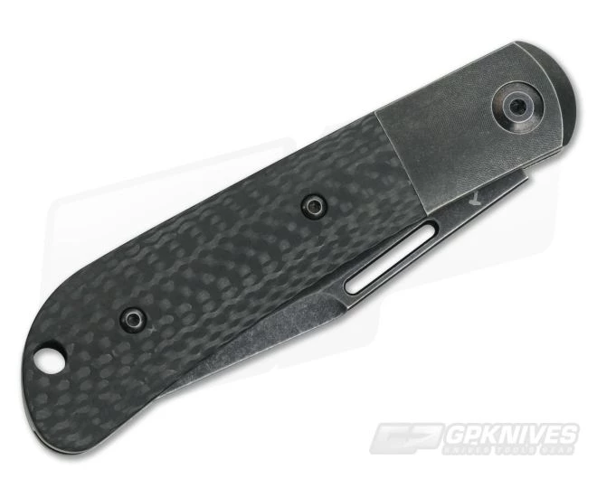 The Handle:Â The handles offer rugged, black stonewash finished Titanium bolsters with integral titanium liners with contoured Carbon Fiber scales. A large Torx pivot and two Torx screws secure the handles together with a beefy, stainless steel back spring for secure and snappy operation. All hardware and back spring have matching tumbled black finish. A large hole is provided for lanyard attachment.