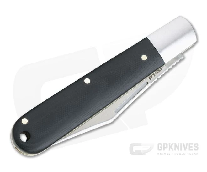 Handle:Â Iconic to the Barlow pattern, brushed satin bolsters top the handsome, polished G10 scales which are traditionally attached with brass pins to brass liners. A stainless steel back spring provides solid slip joint operation and protects the blade when closed. A generous hole is provided for lanyard attachment.