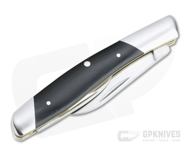 Handle:Â Stainless steel bolsters frame the polished black canvas Micarta for a classy two-tone look complemented by brass pins and liners. The sweeping handle design provides a solid grip with a non-locking slip joint operation for safe use and a timeless feel.