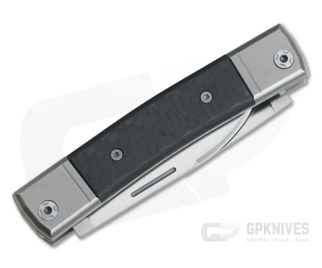 Handle:Â Crowned titanium liners support beautiful handles with scales of Carbon Fiber framed by grooved titanium bolsters at both ends. The back-spring is crowned along with the chamfered scales and bolsters making this knife very comfortable in the hand. The moderate back spring tension delivers smooth pull with snappy half and full stops for secure use.