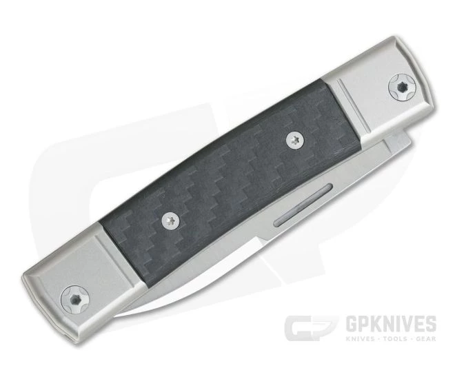 Handle:Â Crowned titanium liners support beautiful handles with scales of Carbon Fiber framed by grooved titanium bolsters at both ends. The back-spring is crowned along with the chamfered scales and bolsters making this knife very comfortable in the hand. The moderate back spring tension delivers smooth pull with snappy half and full stops for secure use.