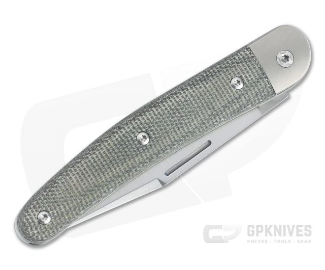 Handle:Â Crowned titanium liners support beautifully curving handles with scales of green canvas Micarta and titanium bolsters. Along with the chamfered scales and bolsters a crowned back spring makes this knife very comfortable in the hand. The moderate back spring tension delivers smooth pull with snappy half and full stops for secure use.