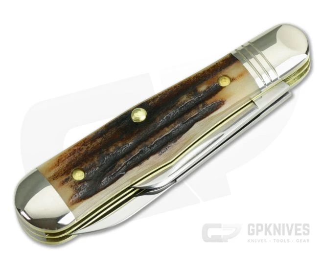 Handle:Â Construction of the wee lad is reminiscent of a cool glass bottle with back spring, brass liners and pins. Carefully rounded and smooth, this one is dressed in rugged and unique Sambar Stag that is appealing both visually and in the hand. Rounding out the construction are dual, polished nickel silver bolsters, pinched and grooved at the primary end. The Pemberton is sure to be a favorite for users and collectors alike.