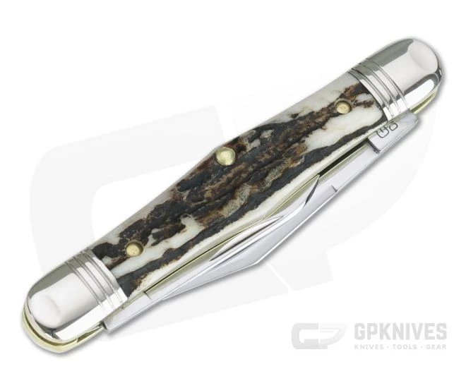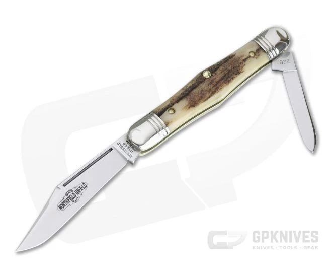 The #33 Conductor from Great Eastern Cutlery is a classic two-blade pen knife pattern has a timeless look and feel with the traditional double peaked handle and two-blade configuration: one Clip Point and one pen blade. Pinched and grooved bolsters add a touch of class while the contoured handle and dual blades offer functional utility. This Northfield UN-X-LD version comes with Sambar Stag covers, polished blades and bolsters and no shield.