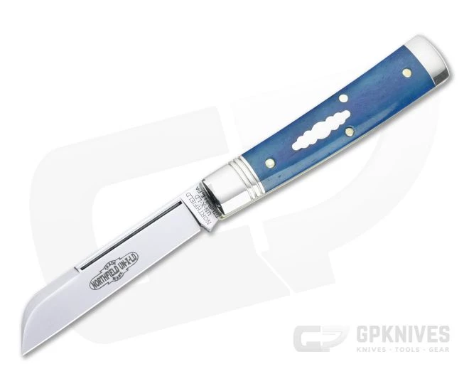 From Great Eastern Cutlery, the Northfield UN-X-LD #49 Freedom is a premium, classic single blade jack knife with brass liner and pin construction, polished grooved bolsters and smooth blue camel bone covers. The 1095 carbon steel blade has a Sheepsfoot profile and bright polished finish.