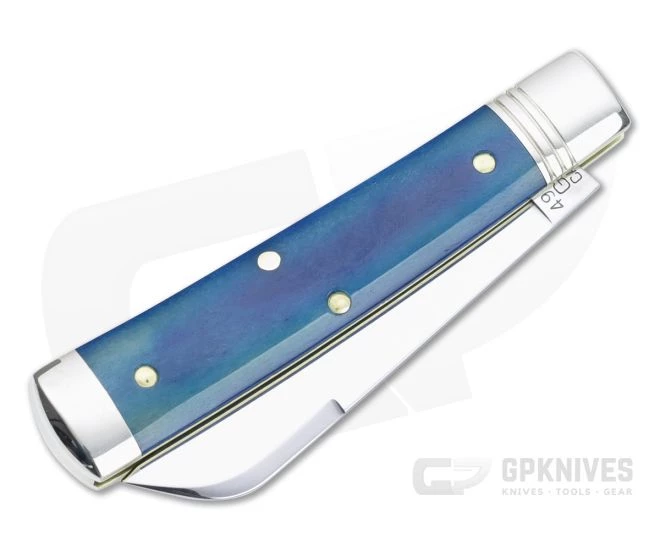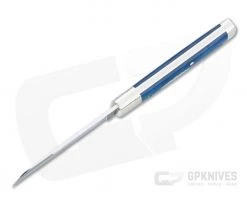 Handle: Fit perfectly between polished and grooved nickel silver bolsters are smooth blue camel bone covers delivering timeless style and classy feel. Construction is classic brass liner and pin with a strong stainless steel back spring for secure slip joint operation. Each GEC knife ships rolled in wax paper in a sturdy tube with company information on the front.Â