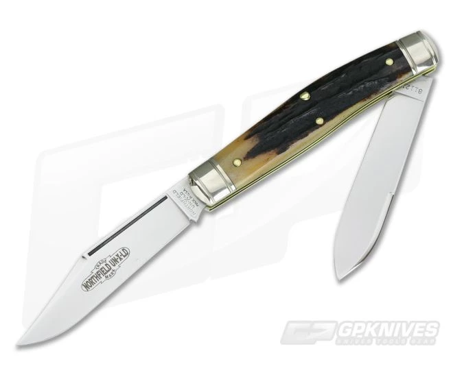 The #81 Northfield Bull Moose pattern from Great Eastern Cutlery works its way into the larger level of traditional-styled pocket knives with plenty of cutting edge to go around. Between its two long blades and bigger handle, the Bull Moose is ready to get to work. Picture this one right at home in your tool shed, basement or garage.Â