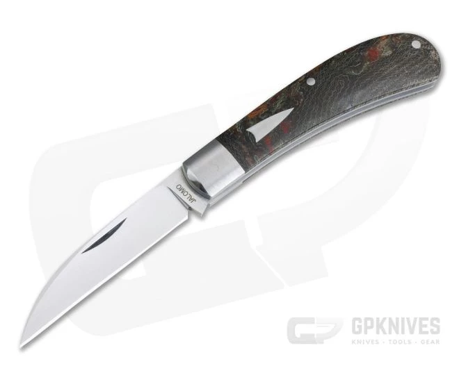 Blade:Â Premium CPM 154 stainless steel is finished with a beautiful, hand rubbed satin finish and a subtle swedge tapering the Wharncliffe blade to a precision tip. CPM-154 delivers modern performance with a balance of edge retention, corrosion resistance and toughness. The Wharncliffe profile and shallow hollow grind allows this knife to slice and pierce with optimal performance. A generous nail nick allows for easy opening of the blade on the smooth slip joint back spring, also made of CPM 154. Excellent walk and talk with flush spine in all three positions.